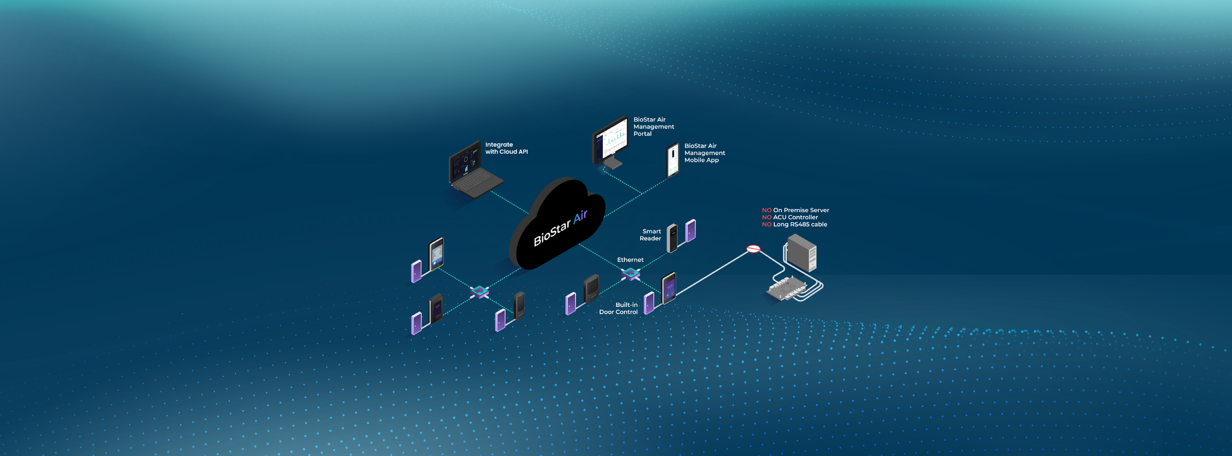 BioStar Air is a 100% cloud-native access control platform that eliminates the need for on-site servers, VPNs, or controllers. Ideal for:
